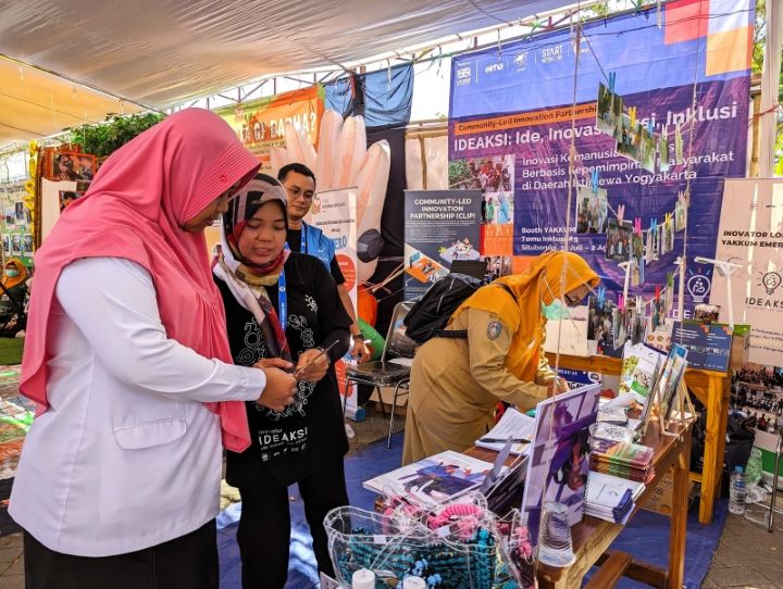 Inovasi-inovasi ini ditampilkan oleh mitra-mitra yang hadir dalam rombongan YEU, yaitu perwakilan Difabel Siaga Bencana (DIFAGANA) DIY, Forum Pengurangan Risiko Bencana (FPRB) Gunungkidul, dan Yayasan CIQAL. Kehadiran para perwakilan inovator IDEAKSI tersebut menginspirasi pengunjung terkait penerapan inklusi dalam penanggulangan bencana (PB) dan adaptasi perubahan iklim (API).