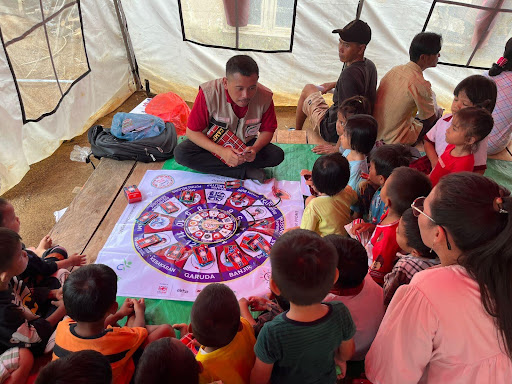 Selain pembangunan IPAH, YEU juga menyelenggarakan Edukasi Psikososial Awal bagi anak-anak terdampak bencana, mulai dari sekolah dasar di Lubuk Ampolu, SMP Negeri 1 Sarudik, hingga anak-anak yang tinggal di hunian sementara (HUNTARA). Melalui permainan dan diskusi, anak-anak diajak memulihkan diri pascabencana, sekaligus belajar mengenal keberagaman dan kesiapsiagaan bencana.